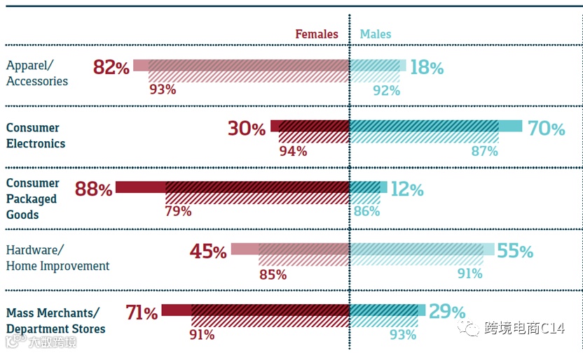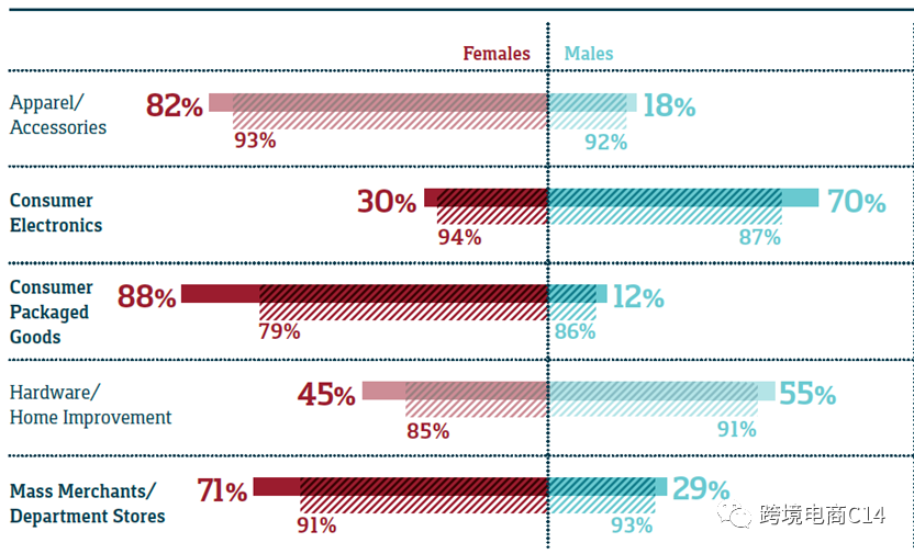 性别在不同类型的产品的评论倾向也有所不同。对于面向高收入女性群体为主要客户群的Wayfair而言,留评积极性和留评率是相对高的
