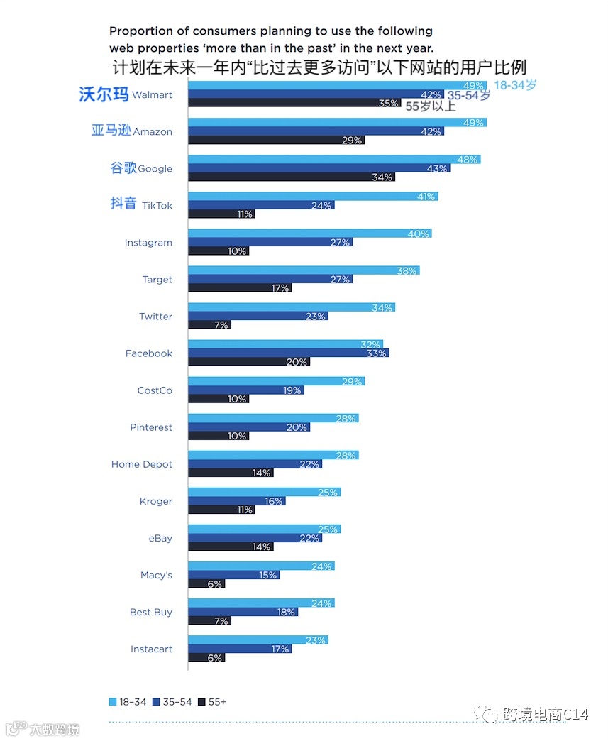 沃尔玛、亚马逊和谷歌将成为消费者的首选访问网站。