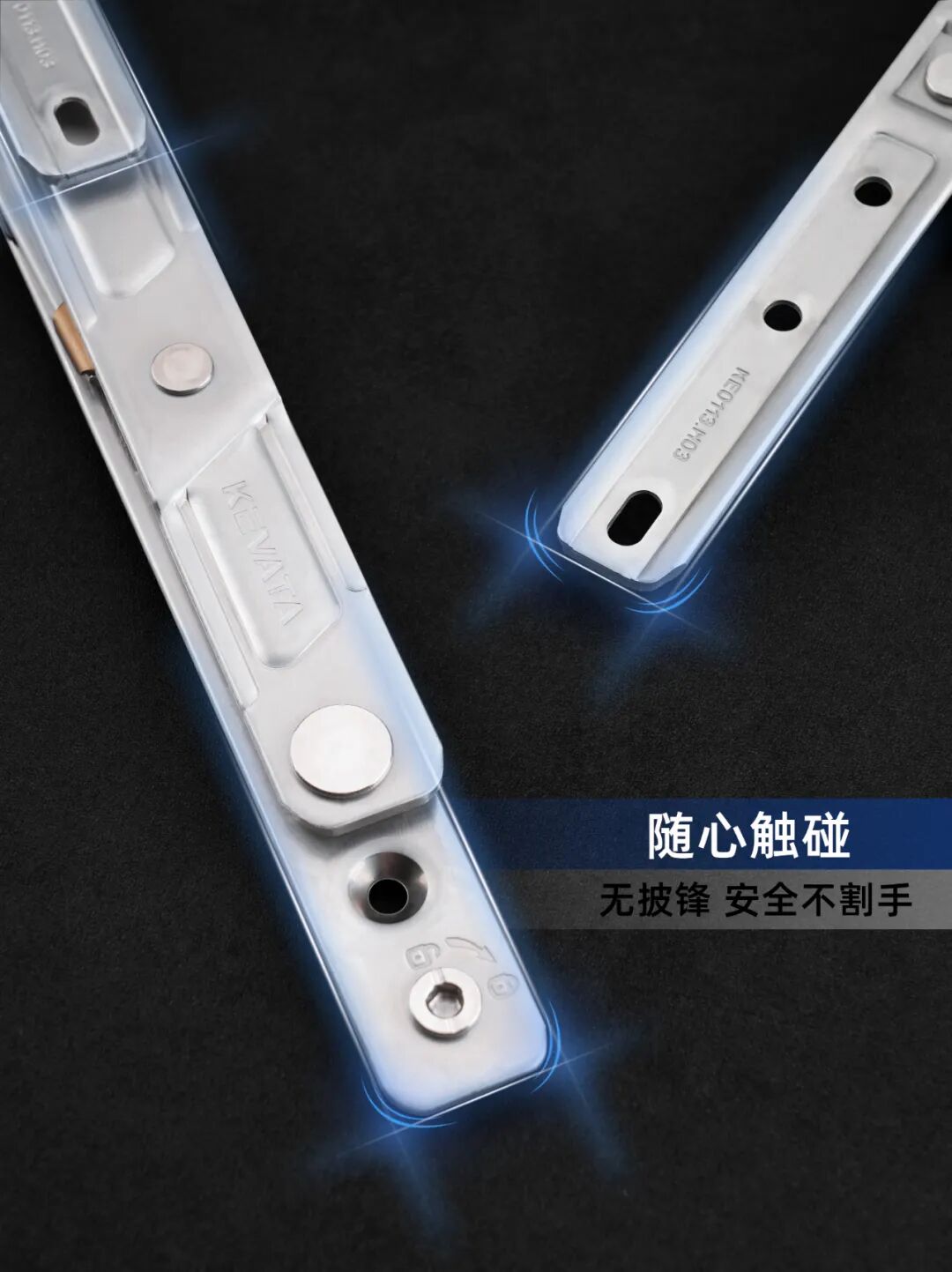 KEVATA科维塔的摩擦铰链全域去披锋控制法,使得铰链触感圆润而无攻击性,是追求极致做工细节与领先级冲压加工技术的体现,更是树立了摩擦铰链质量好坏的最基本的辨别方法。