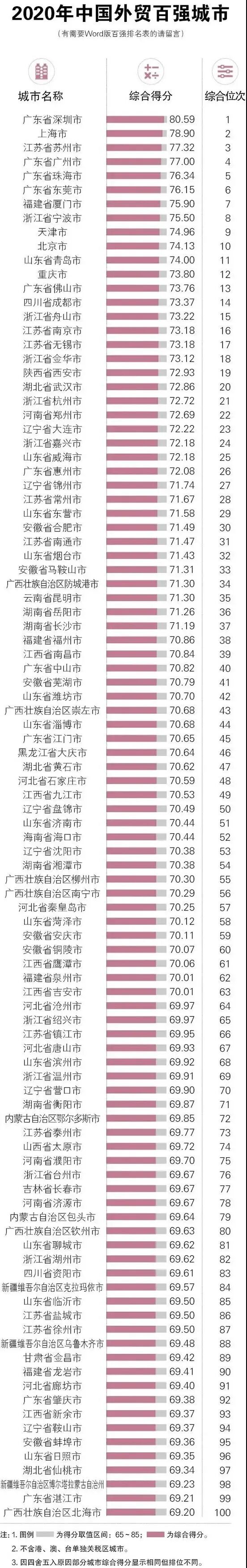 1. 2020年中国外贸百强城市发布:深圳、上海、苏州居前三