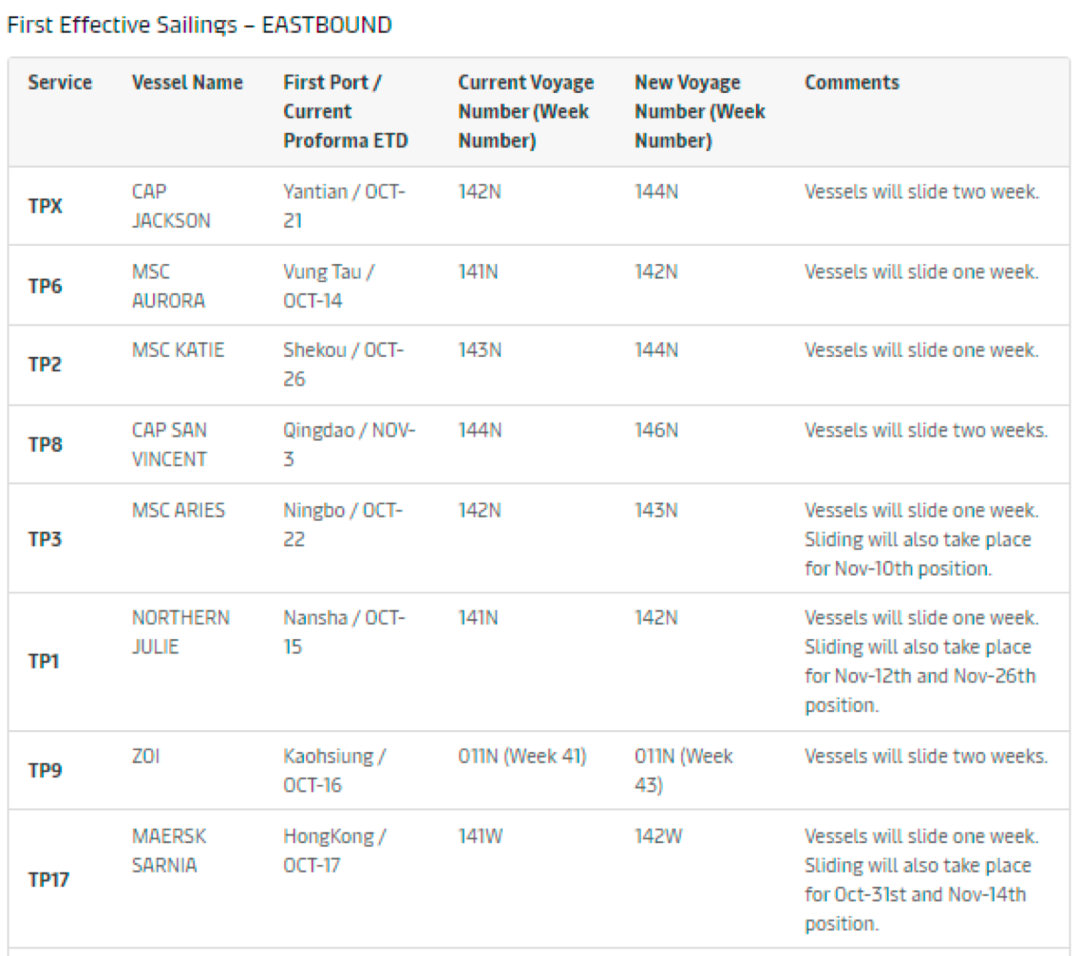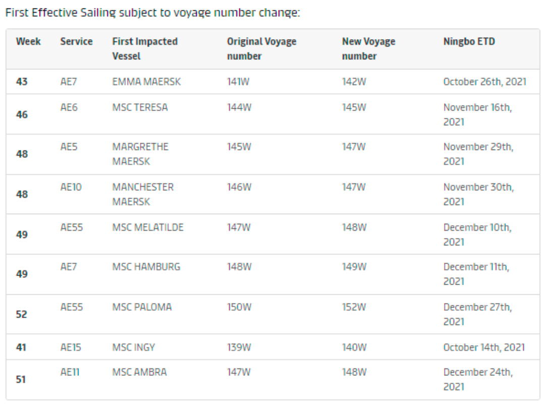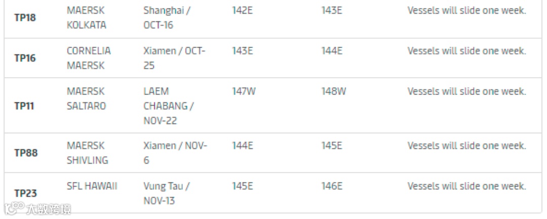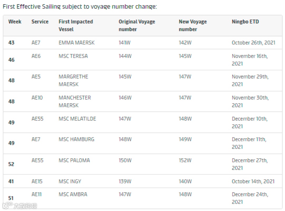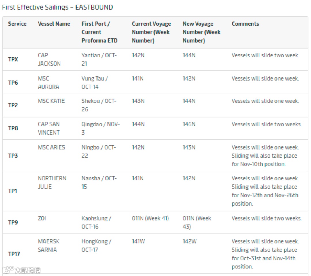 附:船期统计中国大陆到北美、欧洲和地中海第40-45周停航跳港汇总