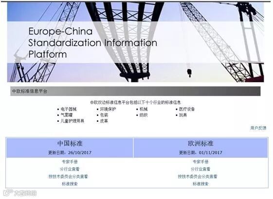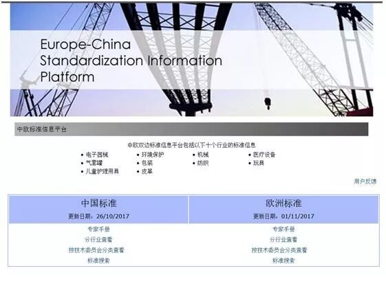 中欧标准化信息平台是中欧双方在标准化领域合作的成果之一,是促进我国与欧盟贸易便利化的重要信息渠道。自平台建立以来,双方在标准信息资源交流方面的合作成效显著,通过标准信息交换共享的方式,解决了中欧双方企业在贸易中的标准信息获取不畅问题,促进了中欧贸易发展。该平台由国家标准化管理委员会、欧盟增长总司(前身欧盟工业企业总司)、欧洲自由贸易联盟、欧洲三大标准化组织等机构共同合作建设,国家标准化管理委员会标准信息中心负责运行维护。