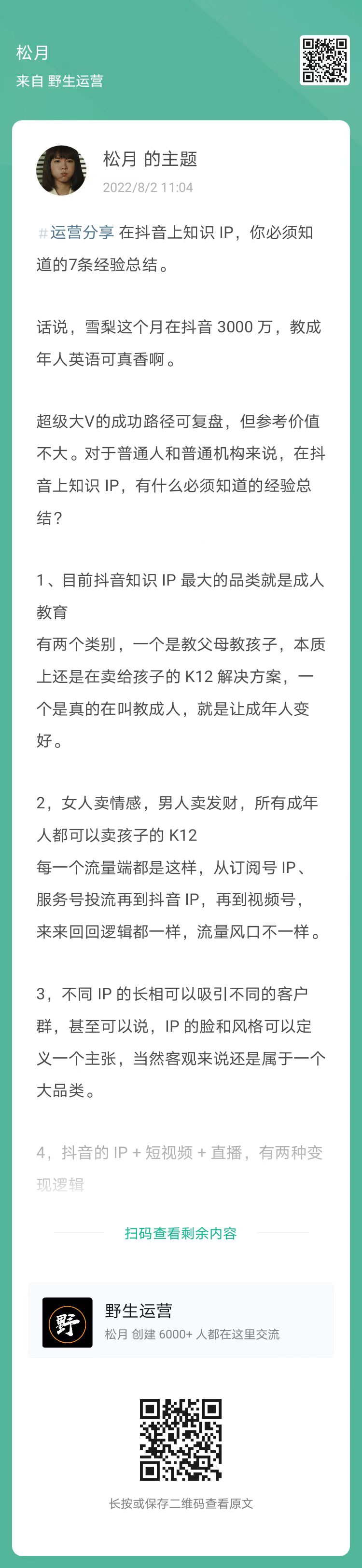 6、松月:在抖音上知识 IP,你必须知道的7条经验总结(扫码看全文)