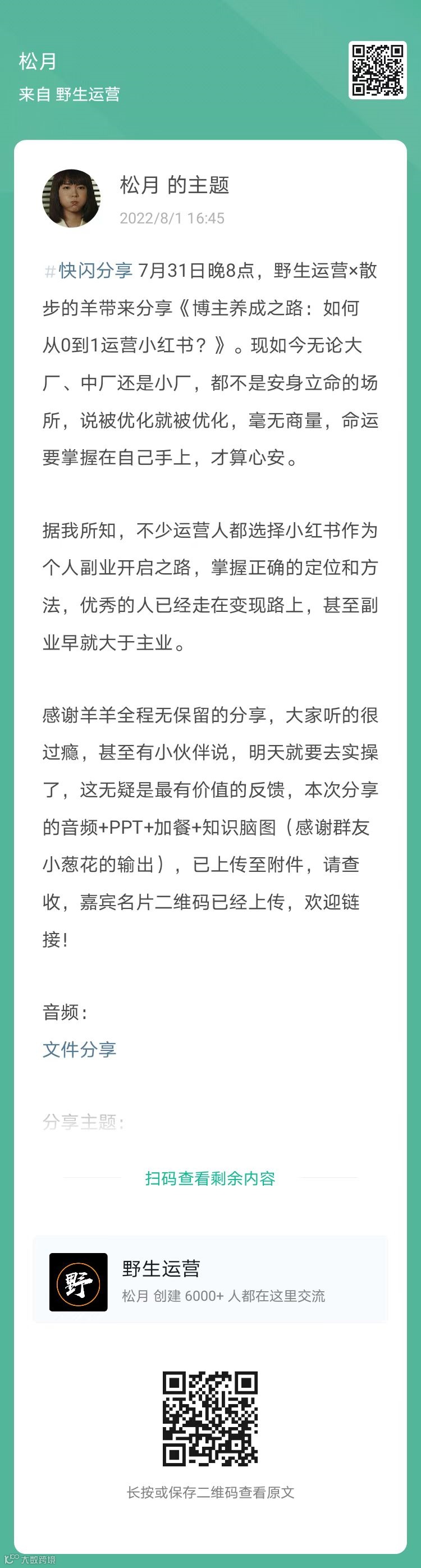 4、野生运营×散步的羊,快闪分享《博主养成之路:如何从0到1运营小红书》(扫码看全文)