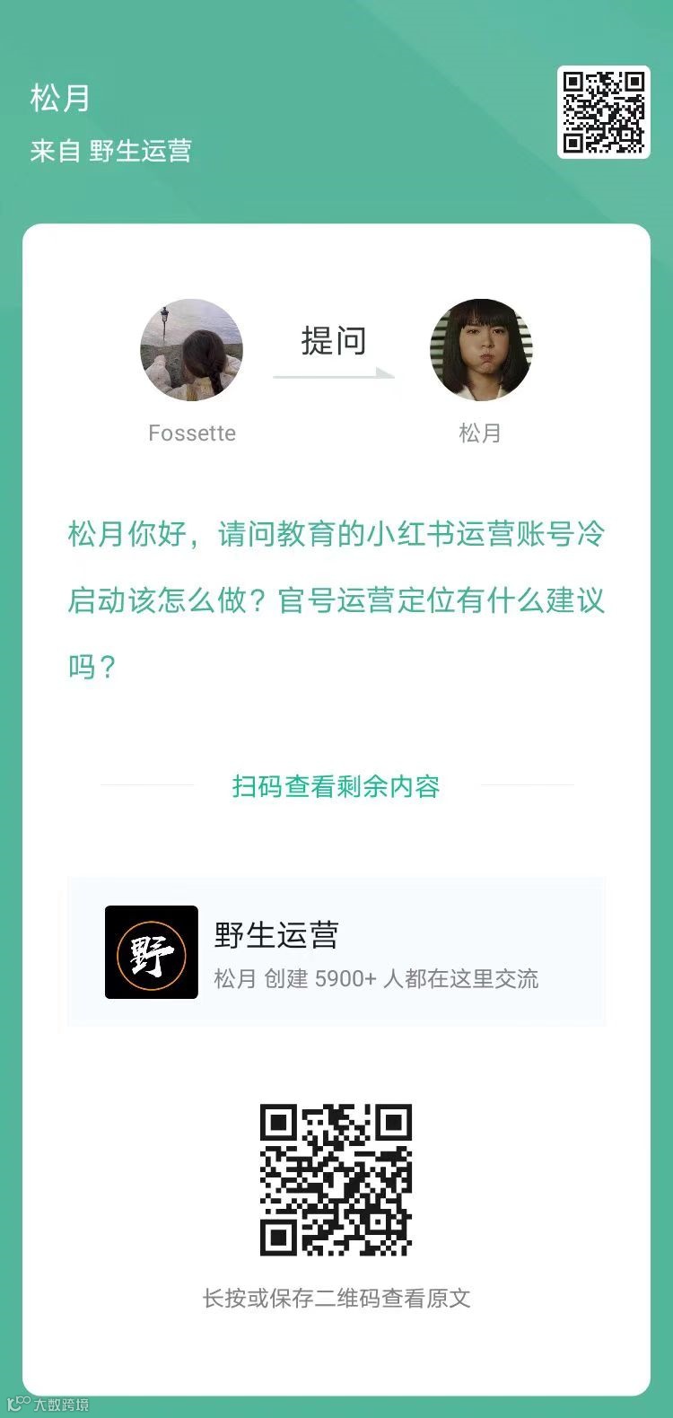 6、提问:小红书运营账号冷启动该怎么做?官号运营定位有什么建议吗?(扫码看全文)