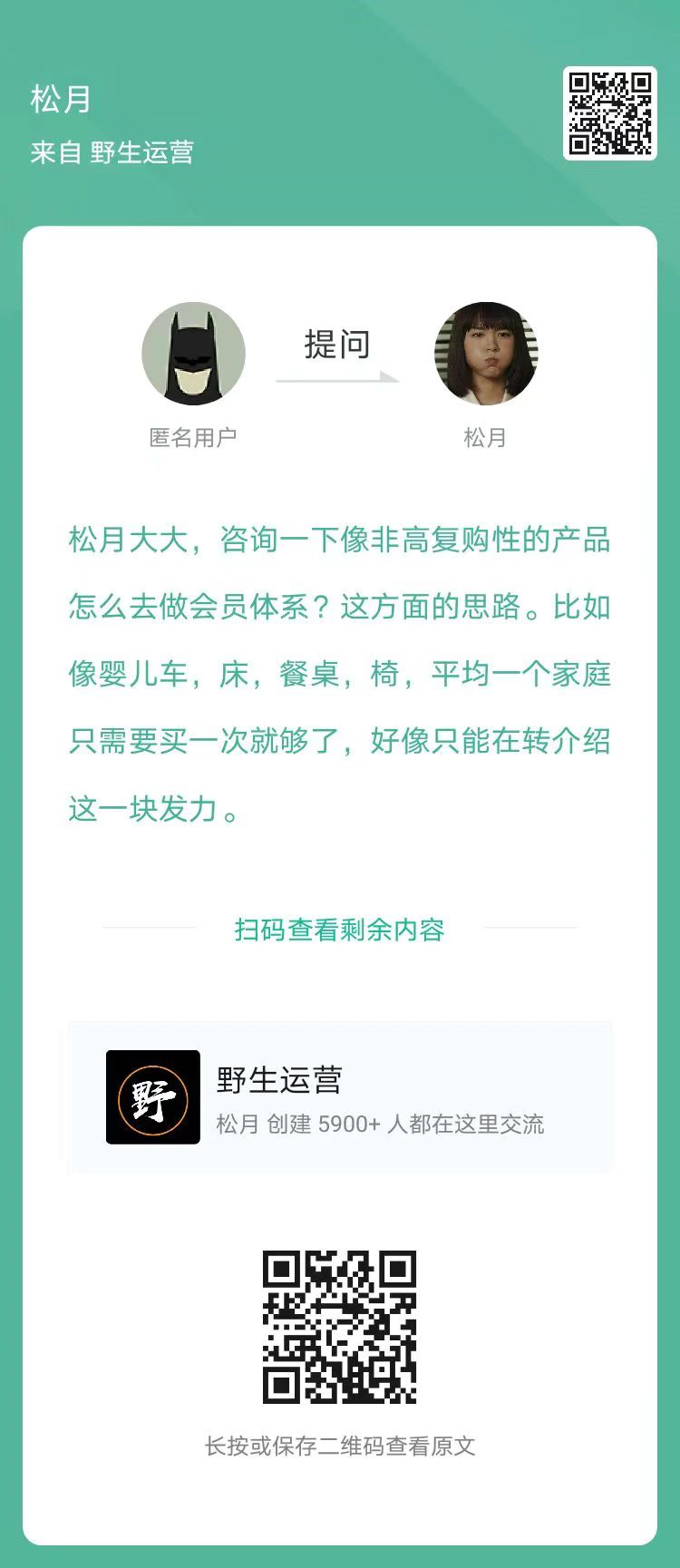 3、提问:非高复购性的产品怎么去做会员体系?(扫码看全文)