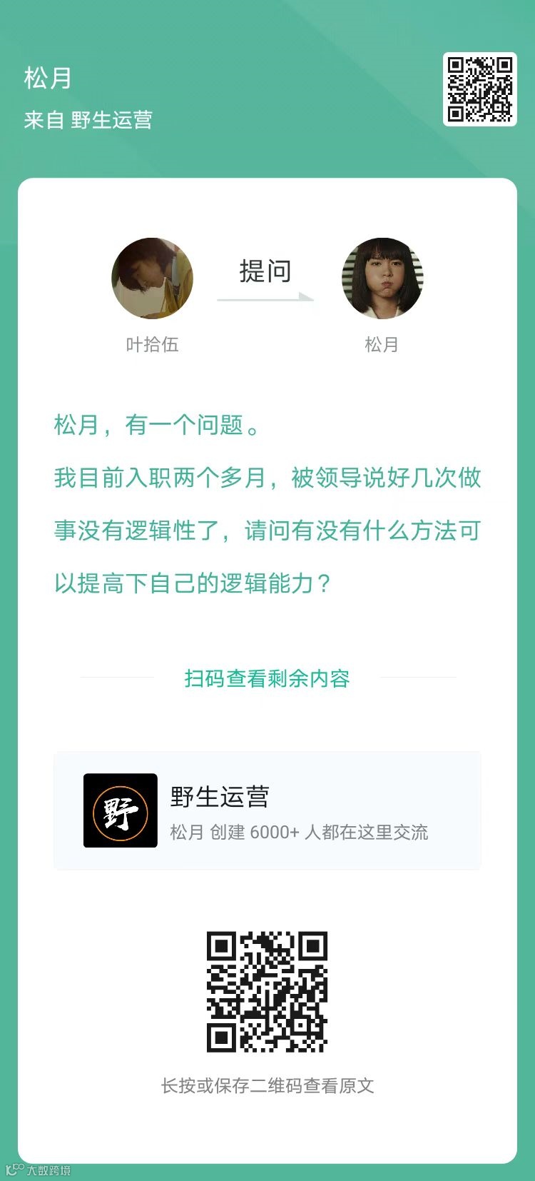 1、提问:有没有什么方法可以提高下自己的逻辑能力?(扫码看全文)