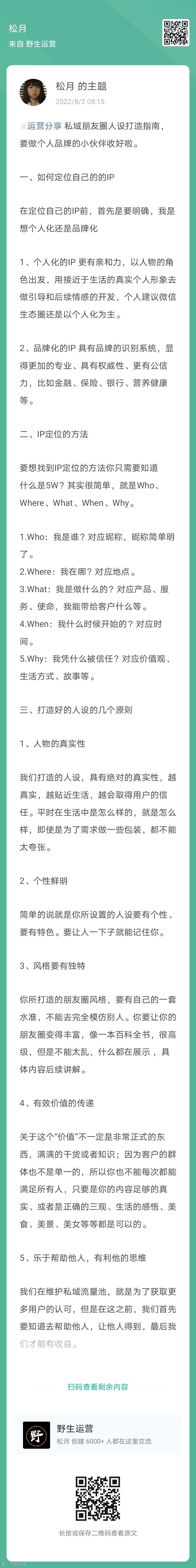 5、松月:私域朋友圈人设打造指南(扫码看全文)