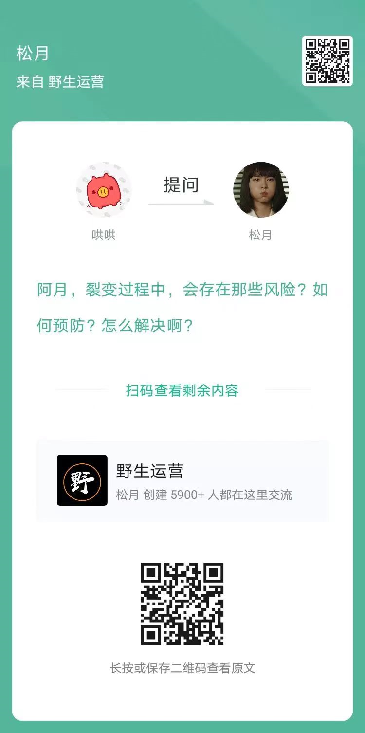 2、提问:裂变过程中,会存在那些风险?如何预防?怎么解决啊?(扫码看全文)