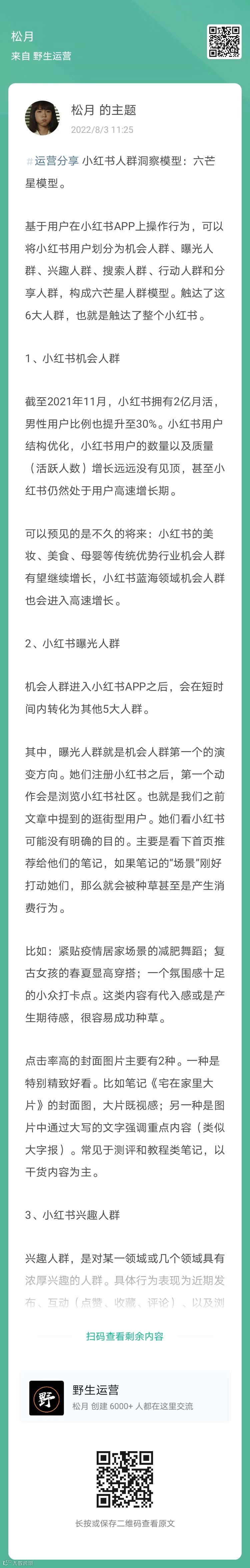 9、松月: 小红书人群洞察六芒星模型(扫码看全文)