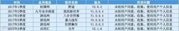 此次外,在被曝光的恶意APP中,“未经用户同意,收集、使用用户个人信息”占比8%,共有36款。其中多数是通讯类的应用软件,比如2016年3季度,在安卓商店检测发现问题的“网易通省钱电话”(V1.0.0)和“UU电话”(V3.5.4)。在今年前三季度,被曝光存在该类问题的APP就有6款: