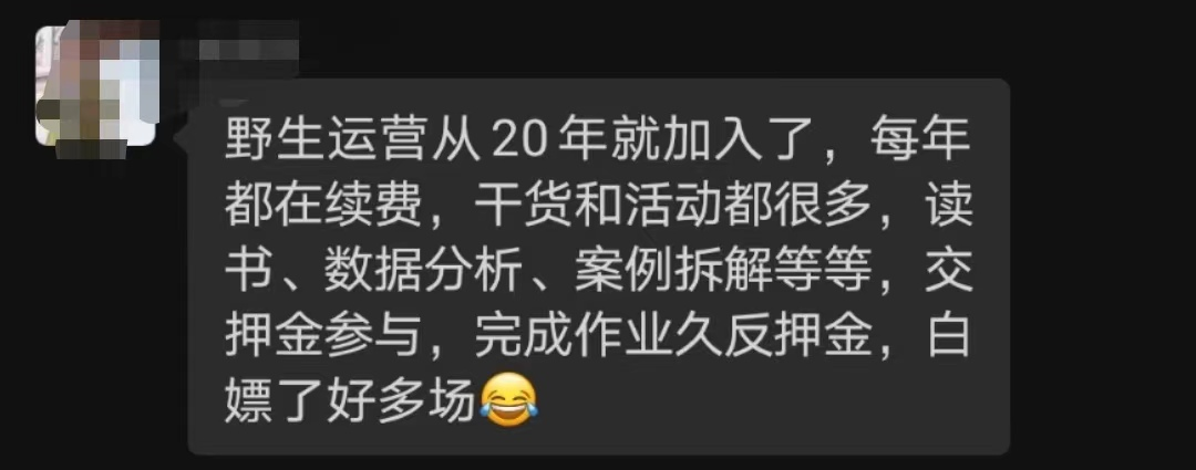 欢迎加入野生运营星球,每周一次快闪分享、运营人学习一手资料、1V1答疑……等硬核干货,而且还能一次入手包括 《2021上半年增长案例合集》、4589 个案例拆解全库、140+ 场群分享的音频+逐字稿、N多运营工具包和资料,就问你一句,值不值?