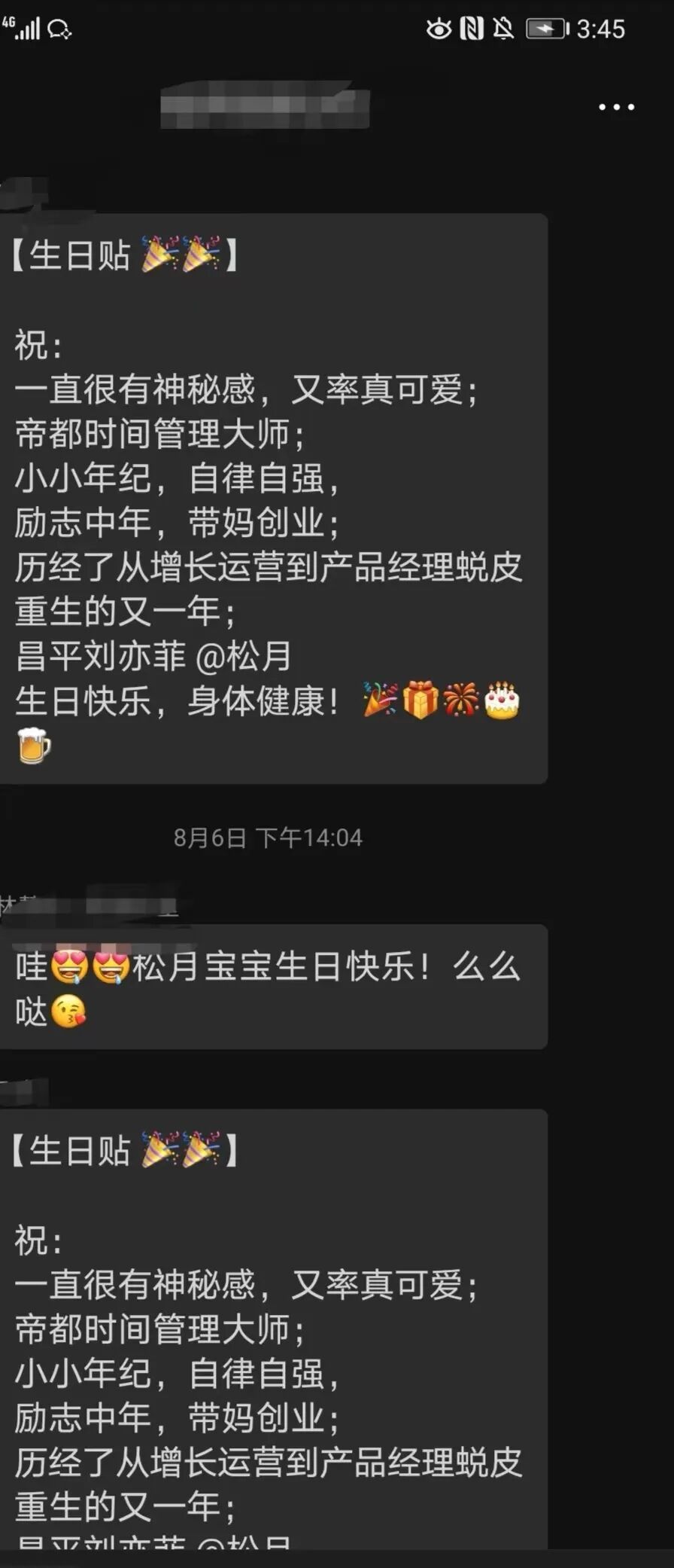 今年生日公司群里的生日祝福