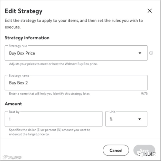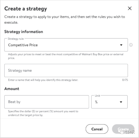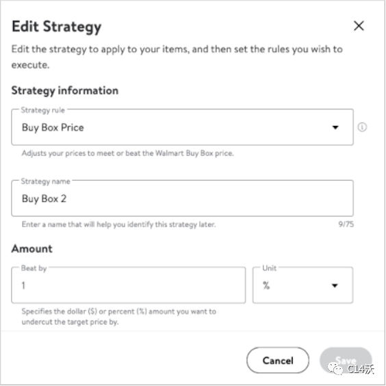 · 有竞争力的价格规则: 这是我们推荐的规则类型,可为客户提供最具竞争力的价格。选择在 Walmart Buy Box 和其他网站上有竞争的商品符合此规则。