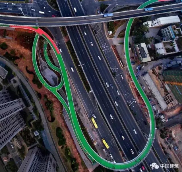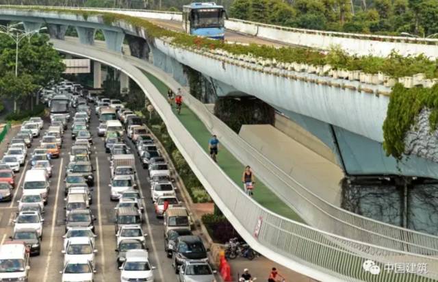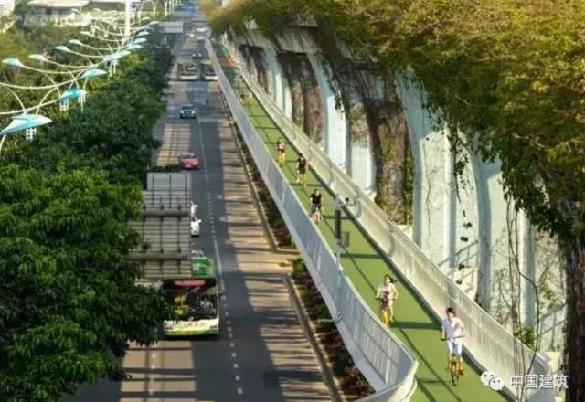 自行车道的设计从空间布局现状出发,将车道布置在既有快速公交道下方,实现空间多层次利用,没有交叉路口,不设红绿灯,一路畅行无阻。