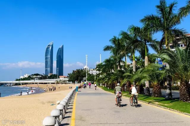 环岛路是厦门国际马拉松比赛的主赛道,被誉为世界最美的马拉松赛道。绕着环岛路骑自行车,聆听海浪,轻拂海风,享受啊。