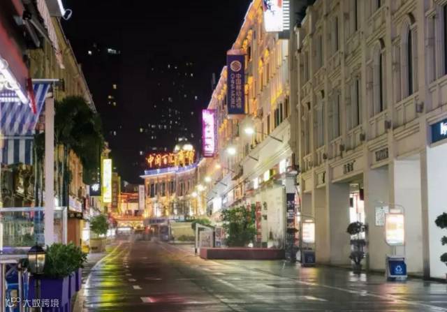 建筑都是骑楼,以粉红和乳白作为主色调,有浓郁的南洋风情。