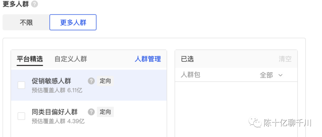 我的优质计划里几乎没有手动人群包,我在投一个流量池,一个看不见的人群包。