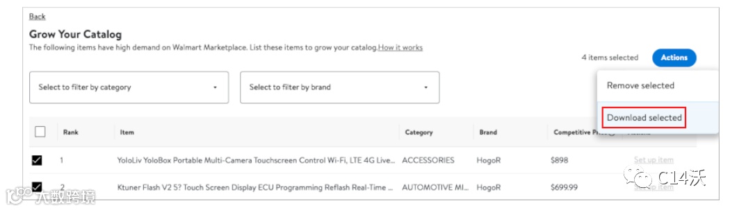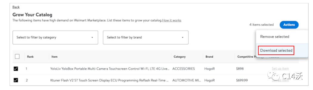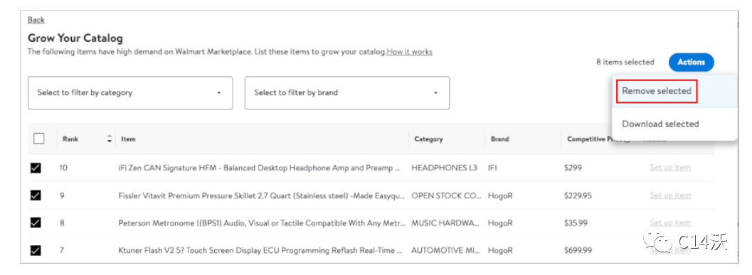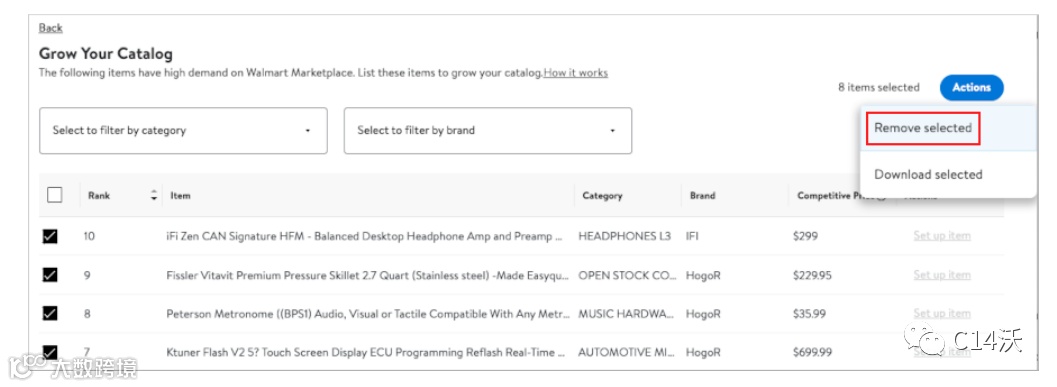 那么新出的这个Grow Your Catalog是什么意思呢?从沃尔玛给的解释Expand your Marketplace listings with popular brands and items.(使用流行品牌和商品扩展您的 Marketplace 列表。意思就是这个位置都是沃尔玛推荐的在沃尔玛上面卖的比较热门的品牌和商品,看看我们是否有此类型的产品可以上架,丰富我们的产品列表)