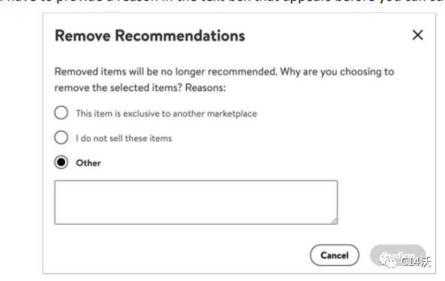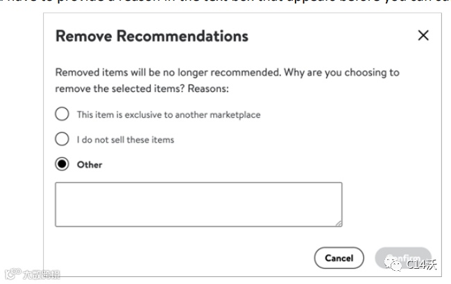 (总结:沃尔玛推荐的这些产品如果你认为这个产品是不可以售卖的或是是别人独家的产品,你没有版权,或是其他理由你可以移除,沃尔玛会继续给新的一批产品推荐给你,而且他们给的推荐很多都是根据你的账户本身的链接所上架的产品以及类型推荐的)