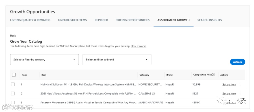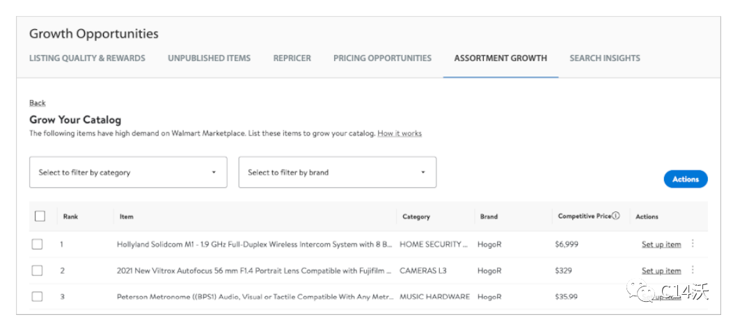 上周沃尔玛出来了一个新功能,在Growth Opportunities-ASSORTMENT GROWTH这个版块