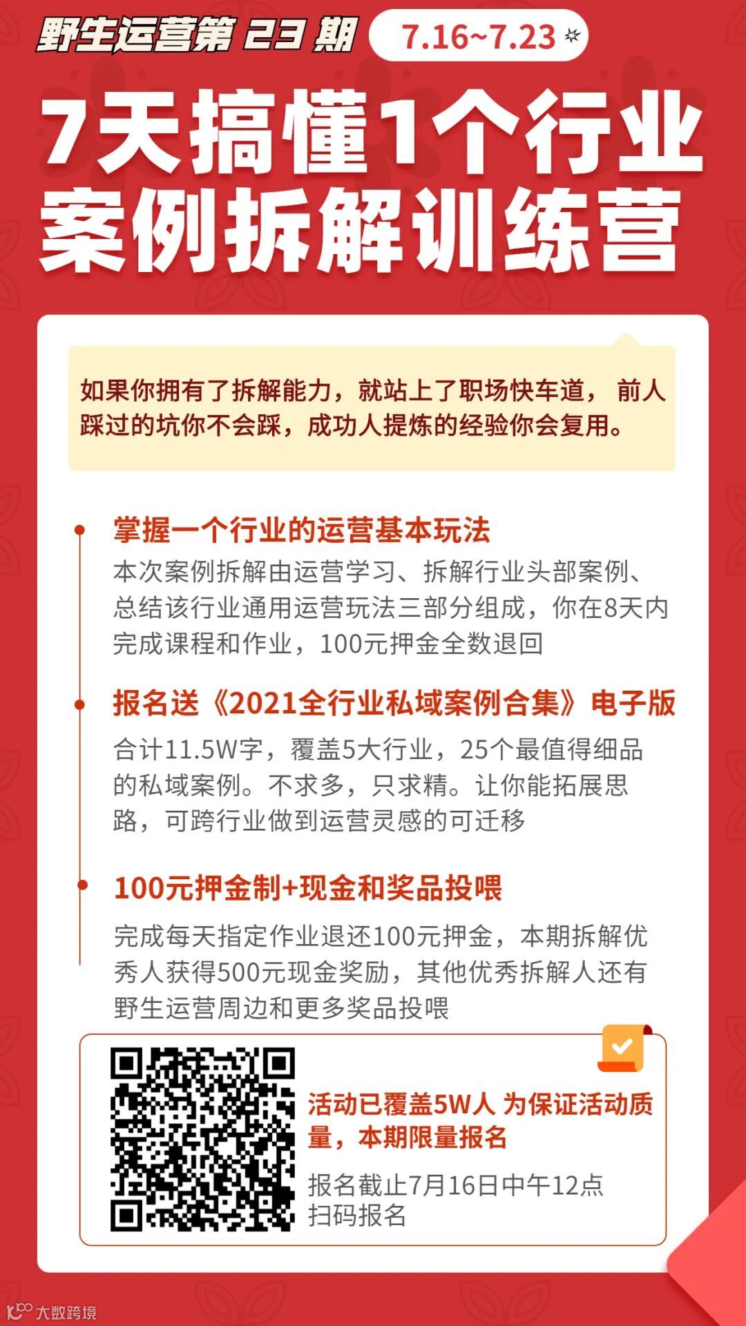如果你想做一些改变,想亲自下场动手拆解,通过贴近行业的方式,让自己看懂一个行业的运营玩法,不妨用这 8 天,沉住心+沉下气+投入8*24小时,迈出行动的第一步,就是扫码报名,别做让自己后悔的事情: