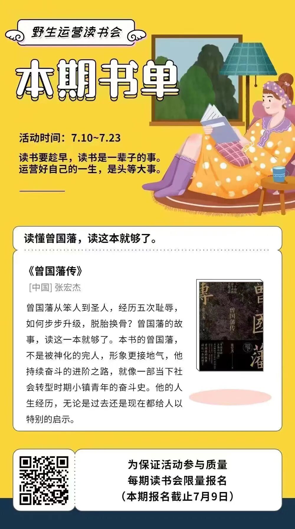 本周野生运营读书会共读的这本《曾国藩传》,就会告诉你答案,今天是读书会报名最后一天,还想报名的小伙伴抓紧啦~