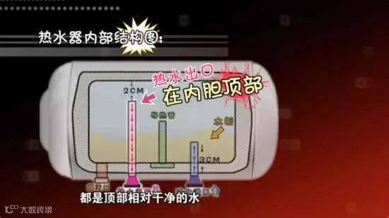 周师傅解释,热水器底部有三个出口,分别为进水口、出水口和排污口,冷水从进水口注入,经过加热管加热后,冷水会把热水往上方挤压,而随冷水进入到内胆的一些杂质则会沉积在热水器最底部。