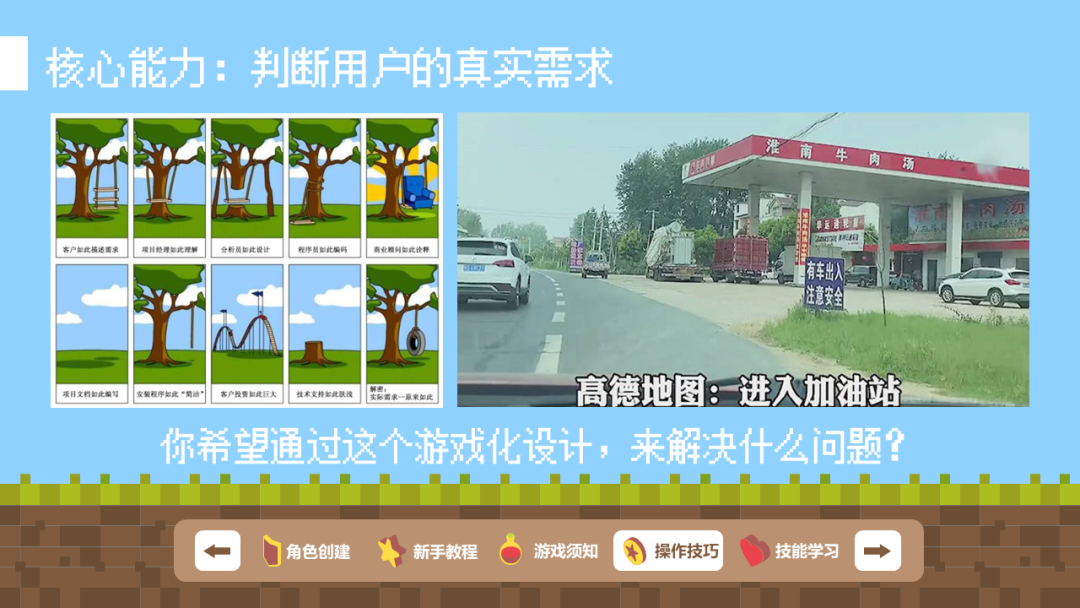 所以在做游戏化体验设计前,需要梳理清楚用户的真实需求是什么,很多时候游戏化体验设计的机制可能是非常简单的,因为现实生活中的需求它也未必就有那么复杂。所以在这里就是说用户想的未必是ta的真实需求,用户头疼的,才是ta的真实需求,知道了用户的真实需求,你才能对症下药,通过游戏化体验设计来解决这个问题。