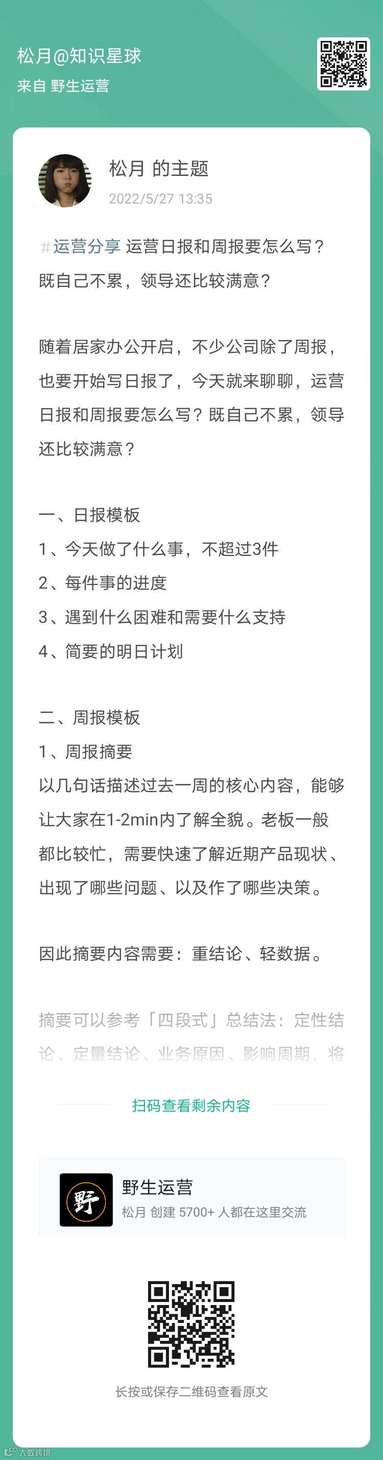 15、松月:运营日报和周报要怎么写?既自己不累,领导还比较满意?(扫码看全文)