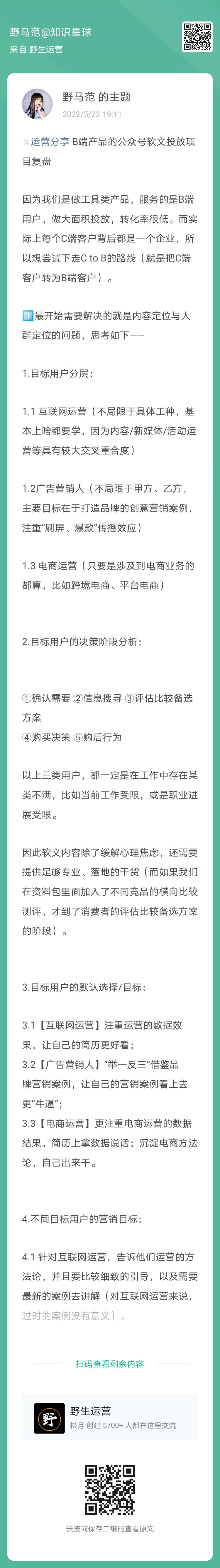4、野马范:B端产品的公众号软文投放项目复盘(扫码看全文)