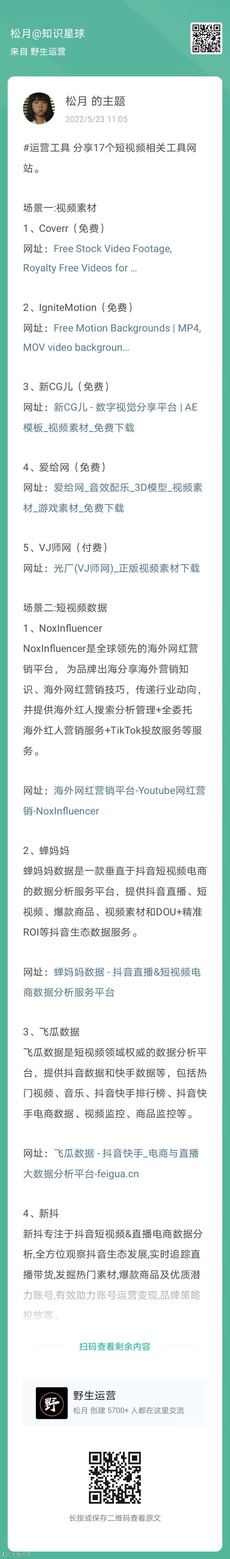 1、松月:17个短视频相关工具网站(扫码看全文)