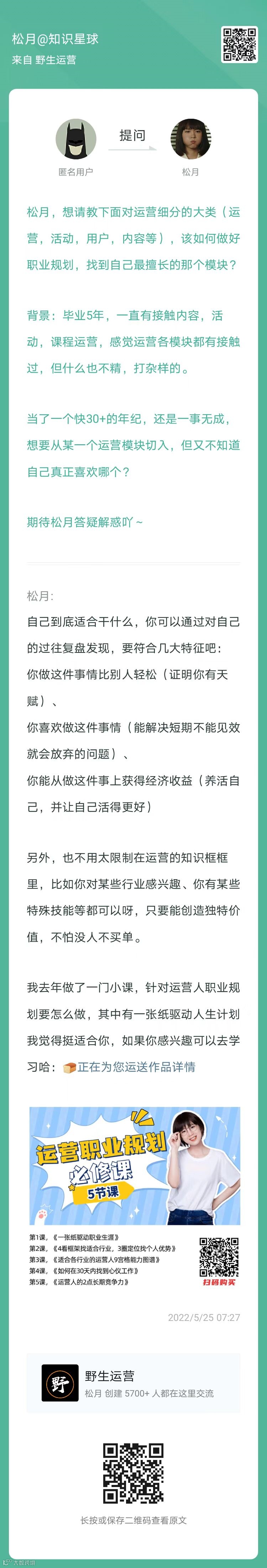 4、提问:如何做好职业规划,找到自己最擅长的那个模块?(扫码看全文)
