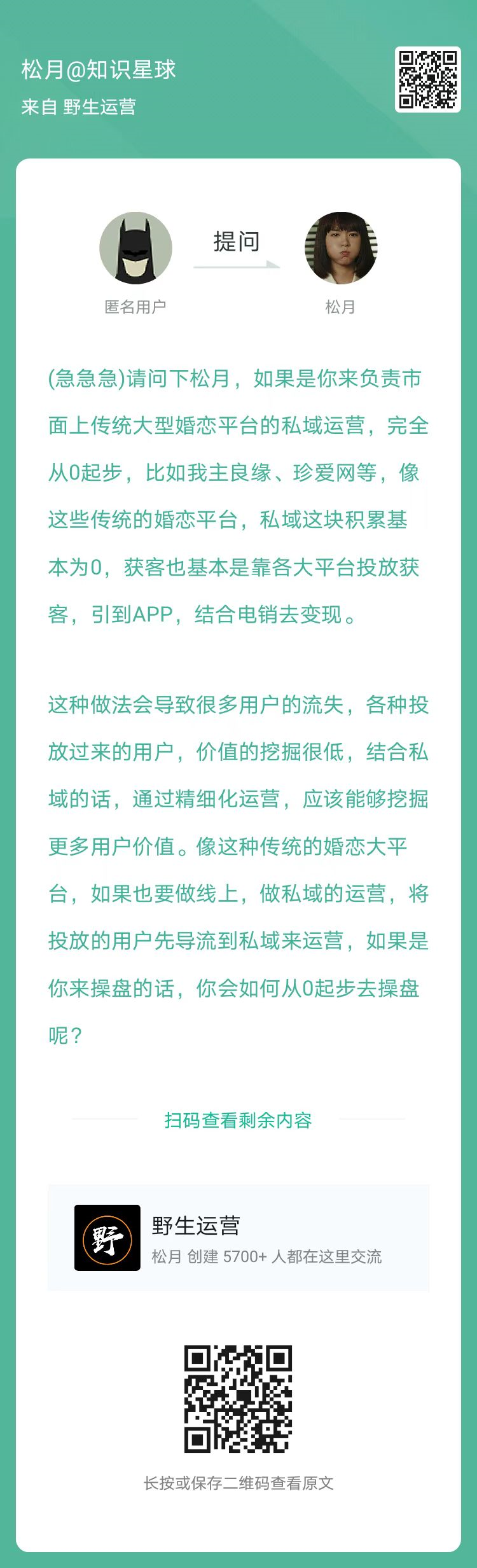 1、提问:一个私域从0到1项目,如果你来操盘,你是什么思路?(扫码看全文)
