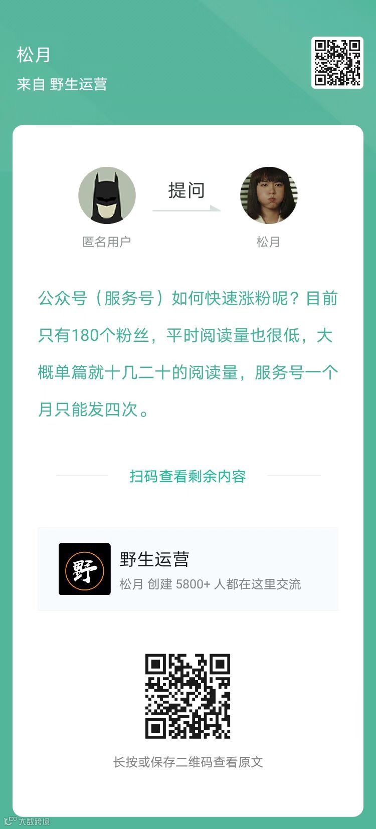 3、提问:公众号(服务号)如何快速涨粉呢?(扫码看全文)