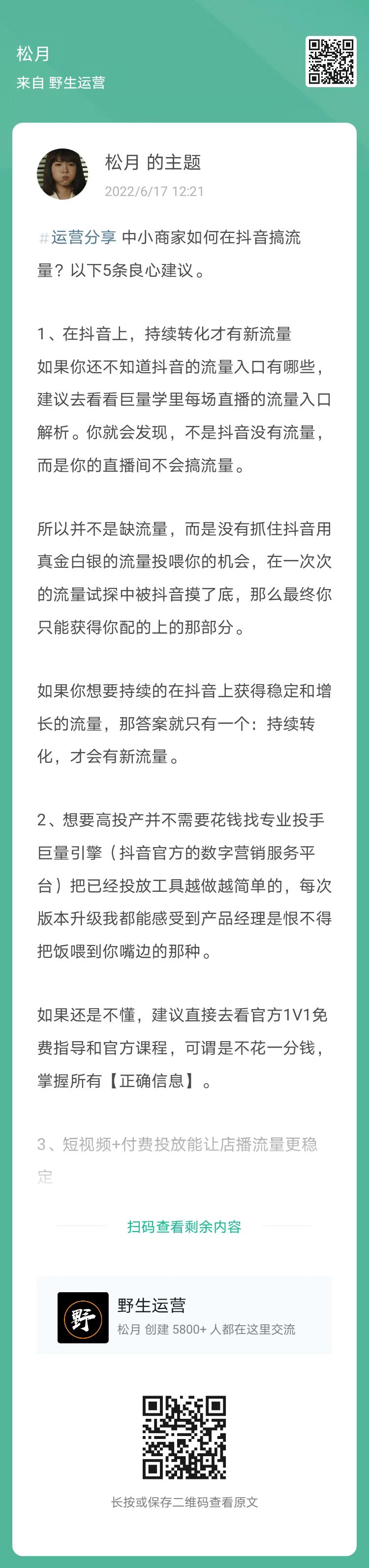 14、松月:中小商家如何在抖音搞流量?以下5条良心建议(扫码看全文)