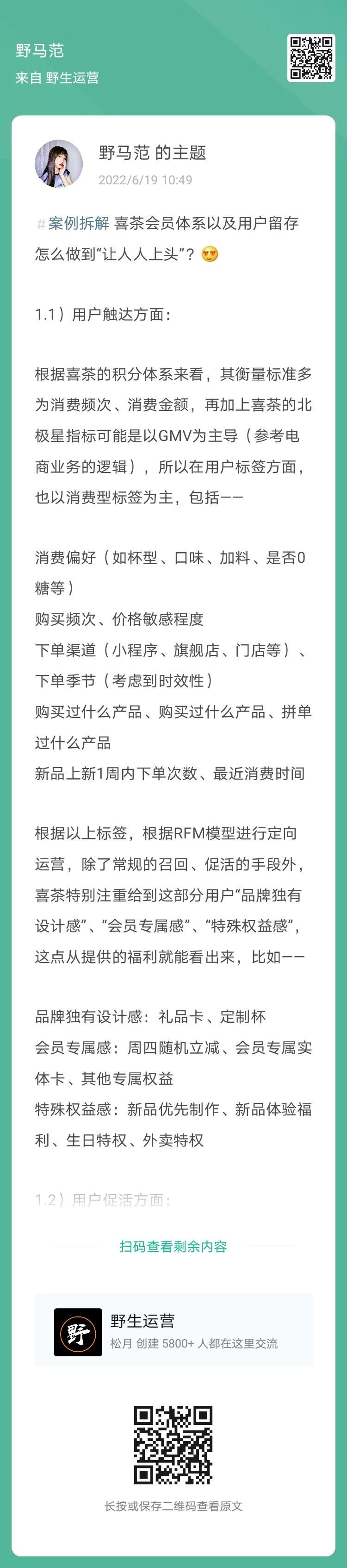 18、野马范:喜茶会员体系以及用户留存怎么做到“让人人上头”(扫码看全文)