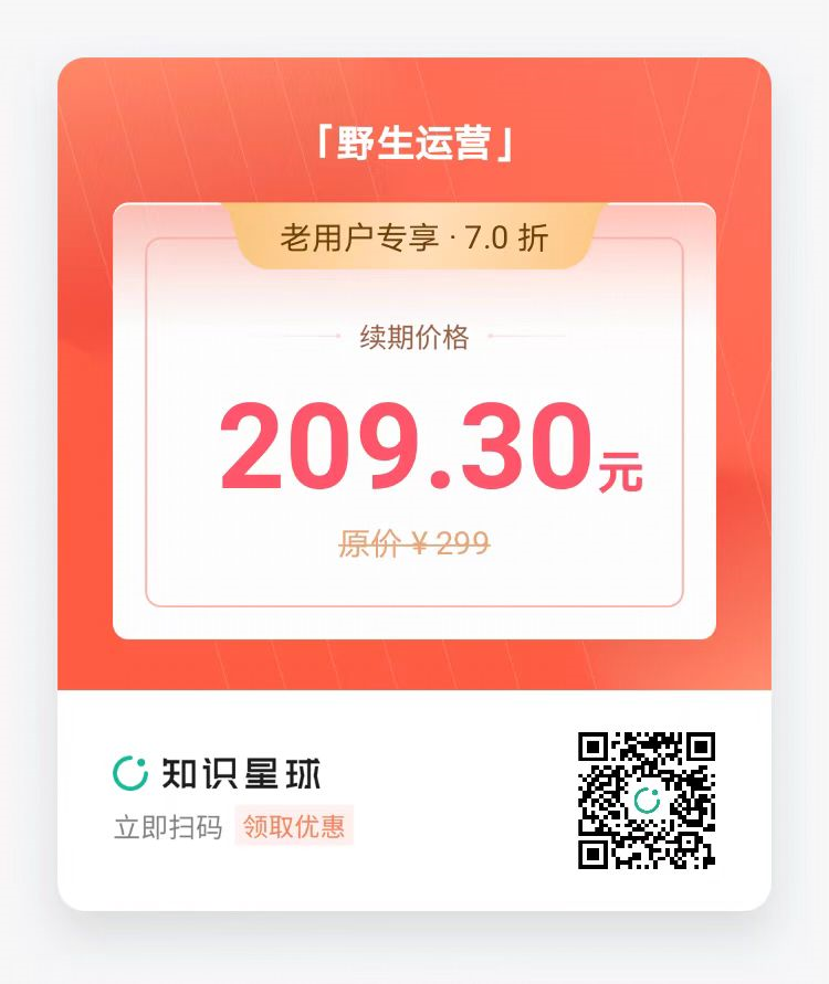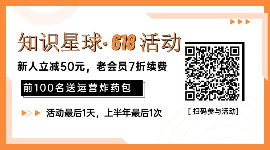 插入一条:今天是野生运营知识星球 618 活动最后 1 天,新人 50 元优惠,老会员续费 7 折(相当立减 90 元),不废话,扫码参与活动!