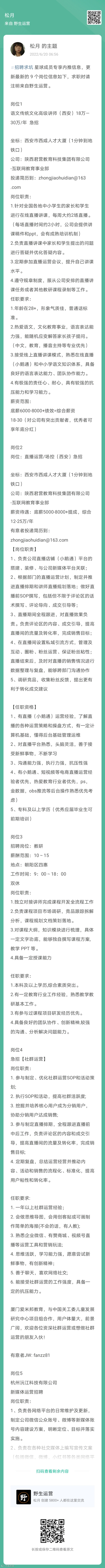 上周更新了 9 个岗位信息如下,求职时请注明来自野生运营,扫码申请岗位👇