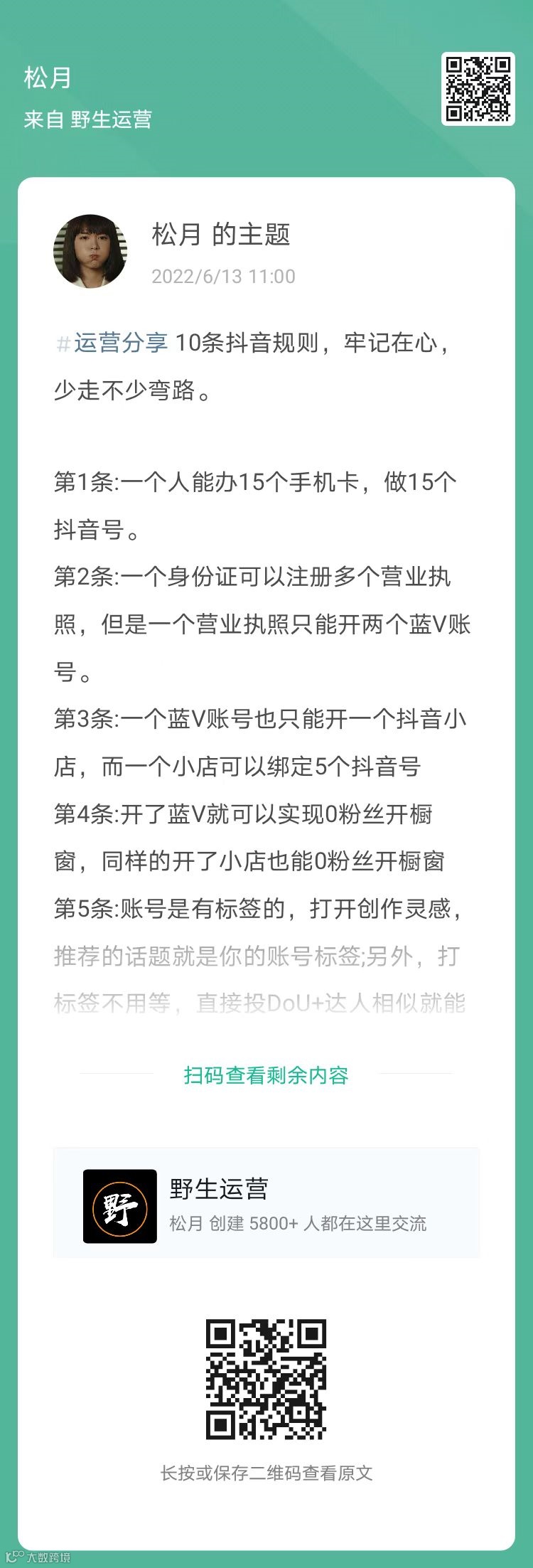 1、松月:10条抖音规则,牢记在心,少走不少弯路(扫码看全文)
