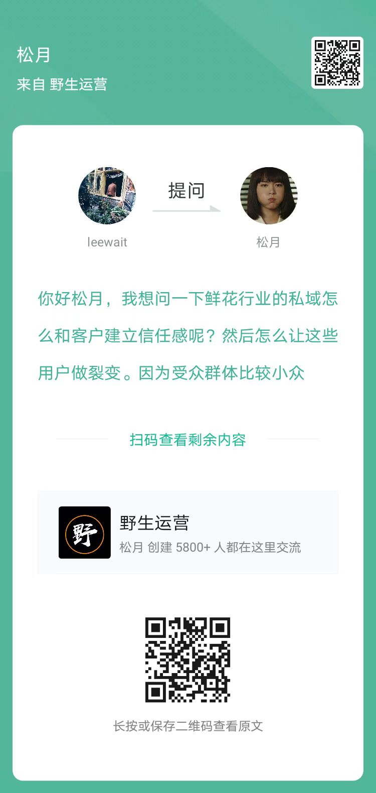 1、提问:想问一下鲜花行业的私域怎么和客户建立信任感呢?(扫码看全文)