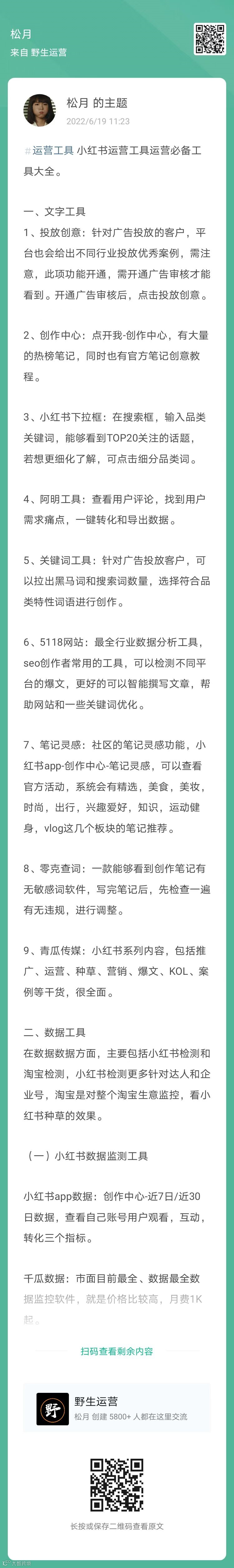 19、松月:小红书运营工具运营必备工具大全(扫码看全文)