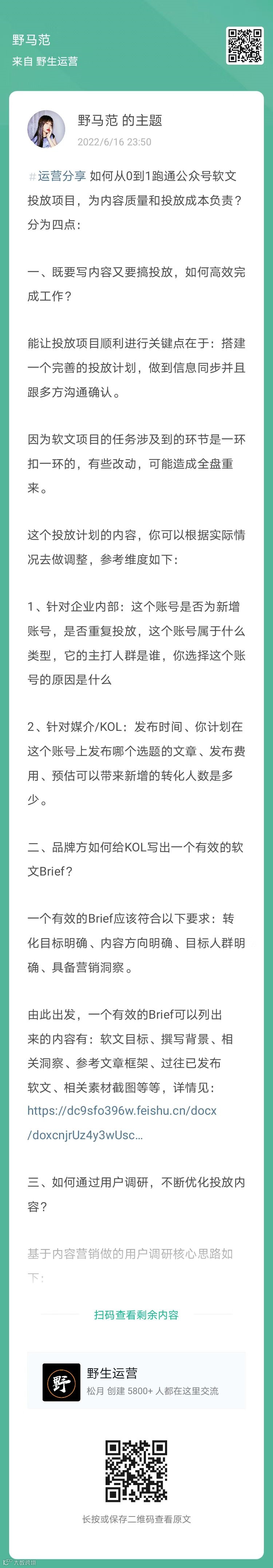 11、野马范:如何从0到1跑通公众号软文投放项目(扫码看全文)