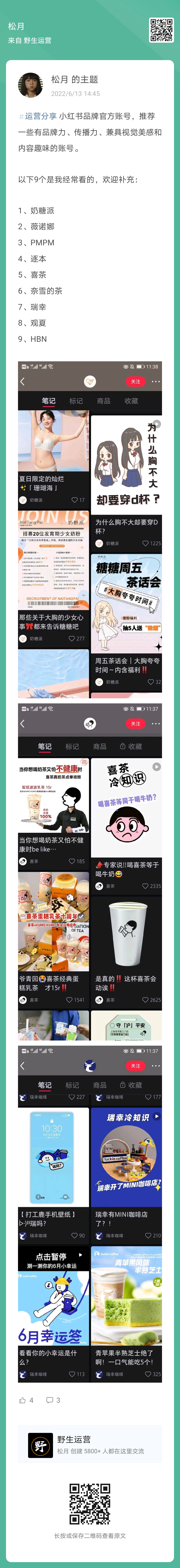 2、松月:小红书品牌官方账号,推荐一些有品牌力、传播力、兼具视觉美感和内容趣味的账号(扫码看全文)