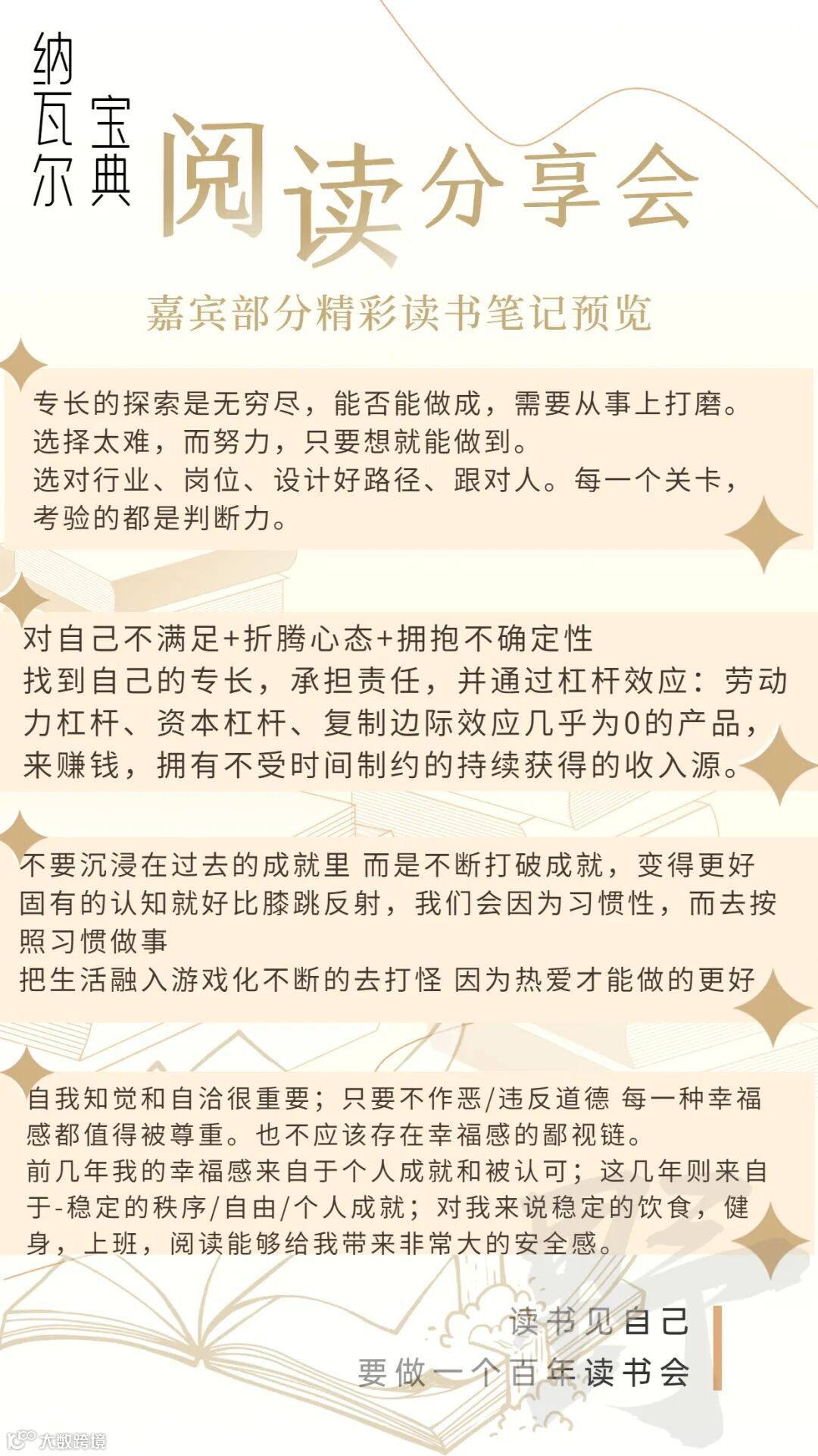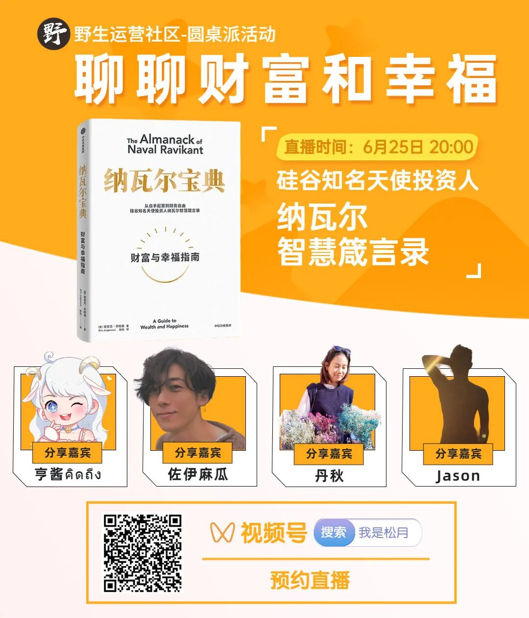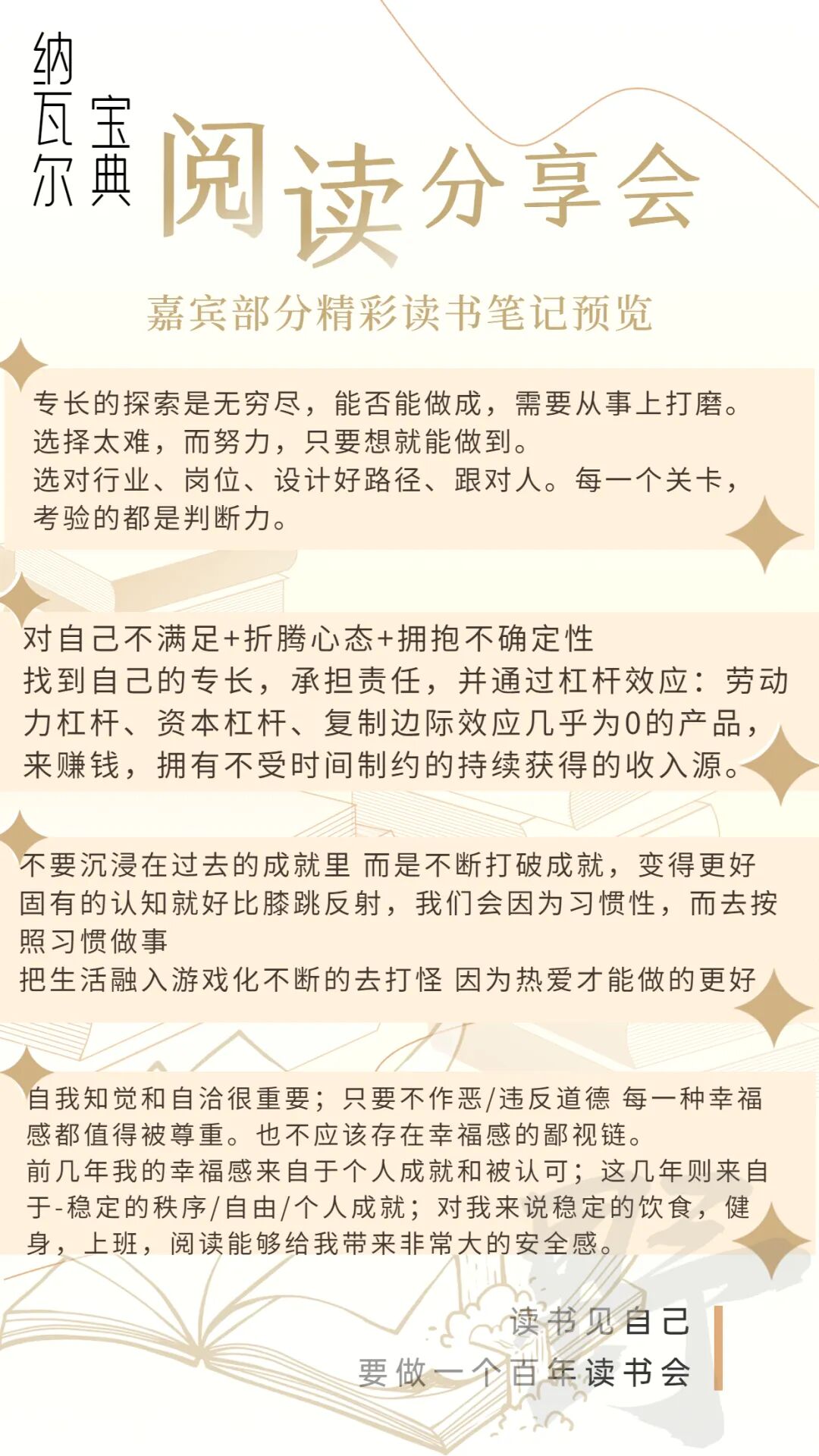这本书刚一出来,读书会就立马安排上了这本书的共读~趁着大家刚读完,攒个局来和朋友们一起聊聊幸福和财富,让我们一起做个更好的人!本次圆桌会议干货满满,邀请到的嘉宾都是读书会非常优秀的读书人!所以内容超值,千万别错过哦!(心急的小伙伴拉到文末预约直播)