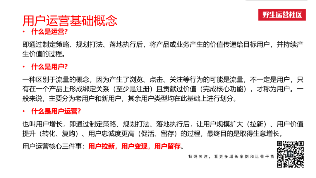 和大多数人的认知相反,「用户运营」并不仅仅局限于做好用户的留存与促活,实际上当我们在讨论「用户运营」时,其实是在讨论「用户拉新」、「用户变现」与「用户留存」这 3 个核心环节。