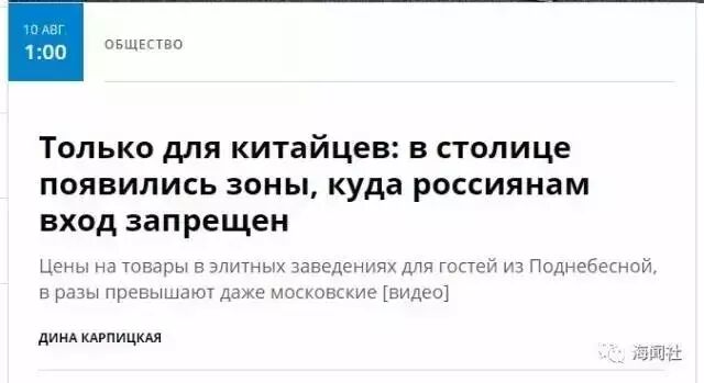 8月10日,俄罗斯《共青团真理报》刊发了题为《专供中国人:莫斯科出现了俄罗斯人禁止入内的区域》,披露了侵害中国游客权益的旅游乱象。