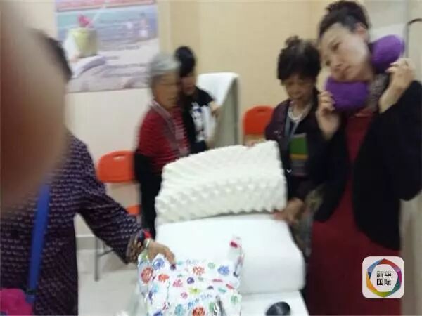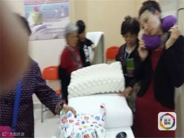 店内中国女店员向客人介绍商店主营的由天然橡胶制成的枕头、床垫等寝具。把所售商品的“独特保健功能”说得天花乱坠。