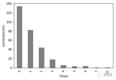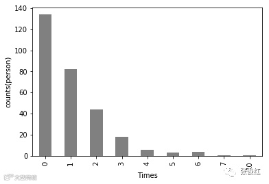 追求人数(次数)为0人的占比最多,追求次数对应的人数一次递减。