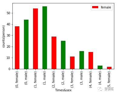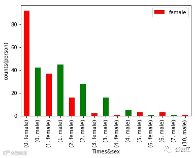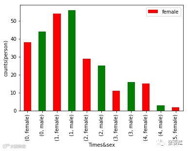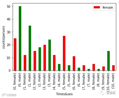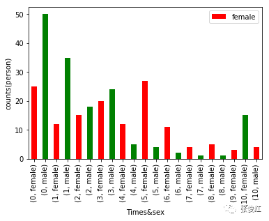 这个其实也是可以理解的,大部分女生相比于男生都比较害羞,不太好意思主动去追求,所以在1-4次时男生要明显多于女生,但是也有一些比较open的女生,会在5次以后对应的人数多于男生。